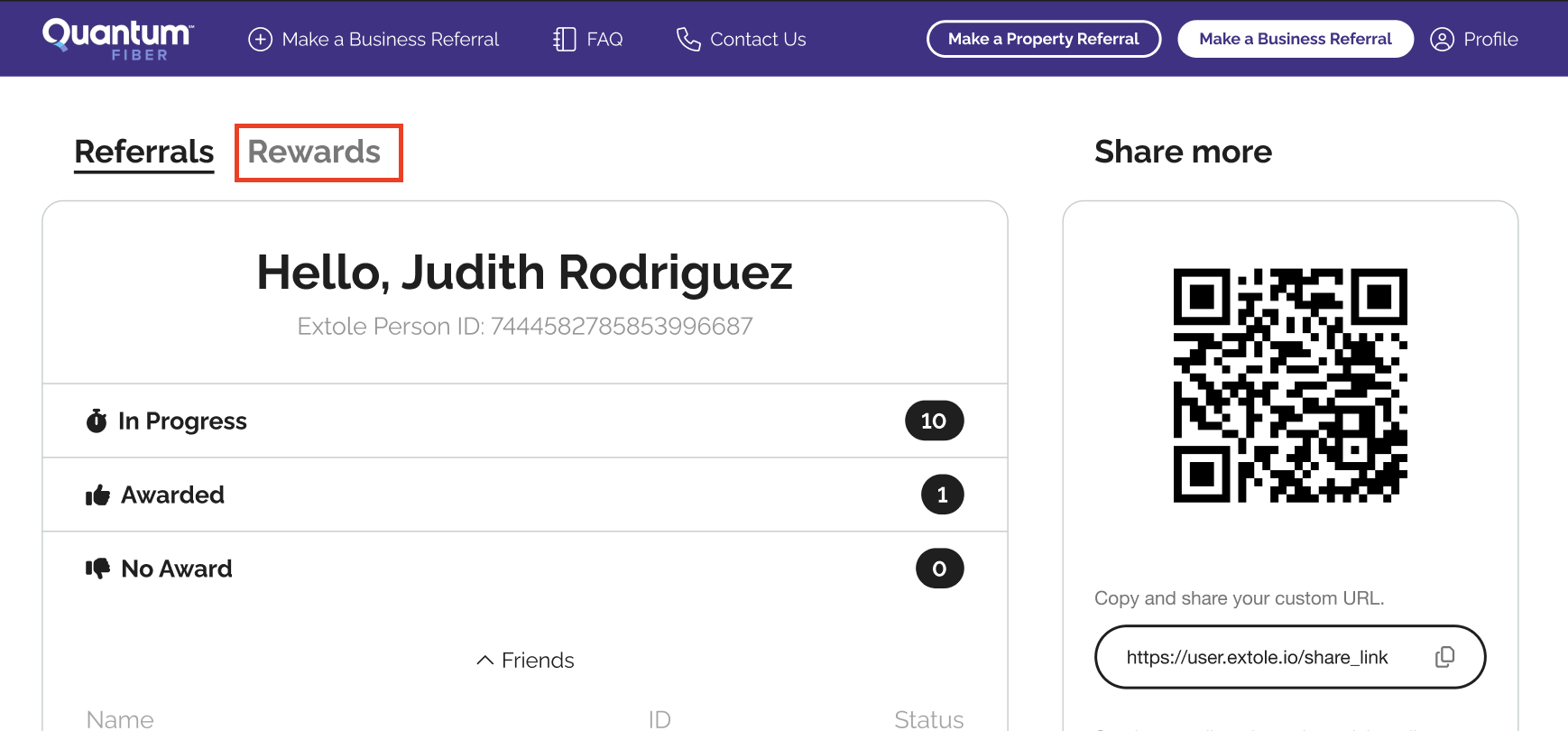 - o Once logged in, you will find your Referrals tab, alongside the new Rewards tab. You can easily navigate between the two by clicking on the title.